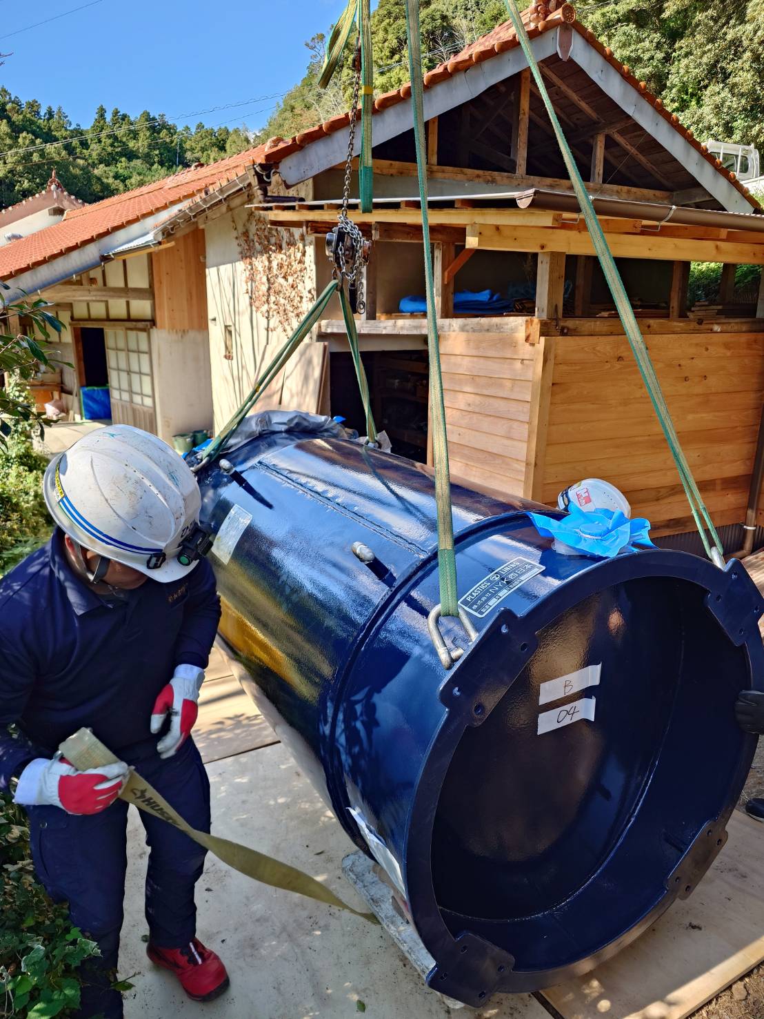 山口県にてタンクの搬入及び、据付け工事を行いました。